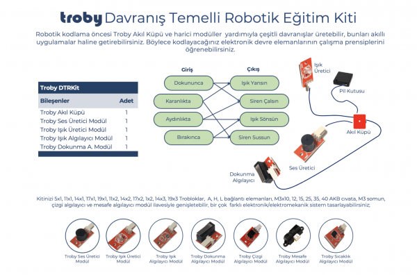 Doğrudan Arduino karta takılan Troby ArduShield üzerindeki sensörler ve aktüatörler ile çok kolay ve hızlı şekilde kodlarınızı deneyebilirsiniz. Dersler YouTube kanalımızda