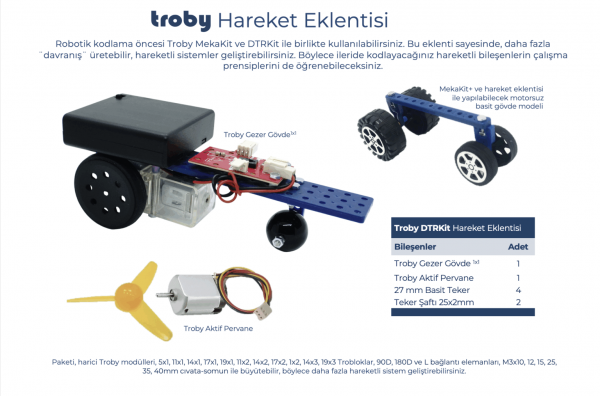 TroBlok parçalarındaki 6 köşe yuvaları kullanarak M3 somun ve civatalarla kolayca montaj yapabilir, her türlü robotik gövdeyi ya da mekanik sistemi oluşturabilirsiniz.